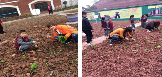 五、学校还开展了实践课程——种植。在家长们的共同协作下,我们的菜园顺利完成了菜苗的栽种,在我们的精心呵护下菜苗长势喜人。