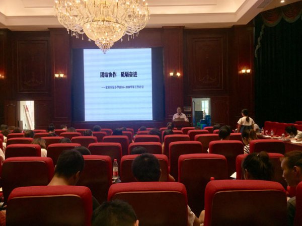 2018年8月21日下午两点半,宜宾东辰学校小学部全体教师在博雅楼会议厅召开开学工作大会。会议由小学部校长助理王勇主持,校长廖辉对开学工作做了题为《团结协作,砥砺奋进》的讲话。