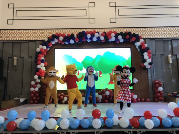 米奇、叮当猫、维尼熊……动画中的人物走出电视,活动现场变成童话世界,孩子们欢歌笑语,好不热闹。