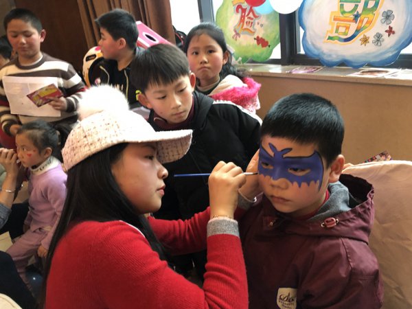 “小兔子”来了!“小老虎”来了!“小花猫”来了!宜宾东辰小学部美术老师手握一支笔,轻调几抹色便可以在孩子脸上绘出各种妙趣横生的图案。