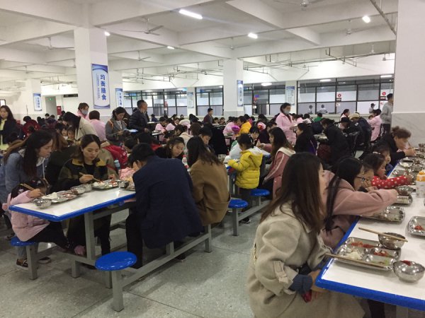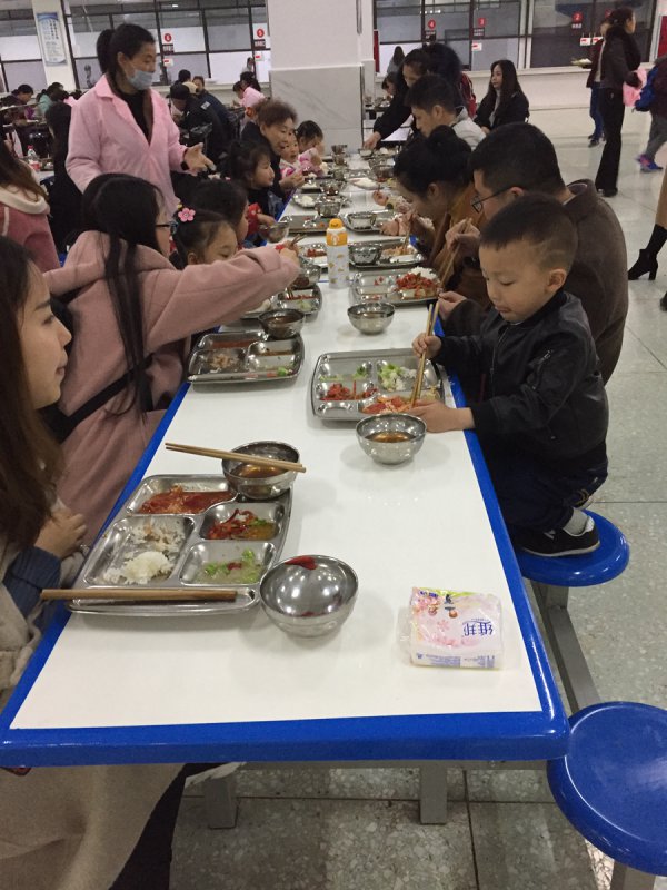 临近中午时分,家长和孩子们参观了温馨整洁的寝室,最后来到食堂,体验美味午餐。家长切身感受到了学校规范化、标准化、精细化的后勤服务工作。