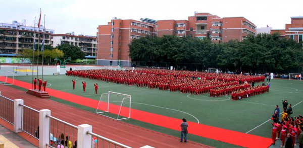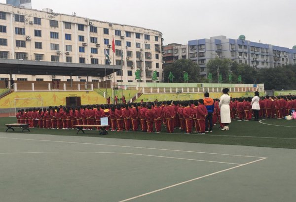 赶在升旗仪式前,映入眼帘的是一群群正在做早操的孩子们,主席台上体育老师正慷慨激昂地喊着口号,孩子们整齐划一地奔跑在校园的操场上。