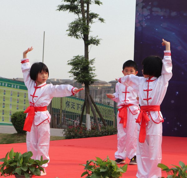 武术表演,将全场气氛带入高潮。棍打一大片,枪似一条龙,孩子们刚劲有力的身姿,引得台下观众掌声雷动。