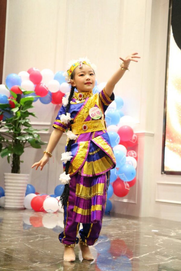 3号选手蒋辰晨为大家带来傣族舞《月光下的凤尾竹》,傣族三道弯的舞姿,加上傣族清新悠扬的音乐,仿佛带领观众置身在山清水秀、鸟语花香的傣族村寨。