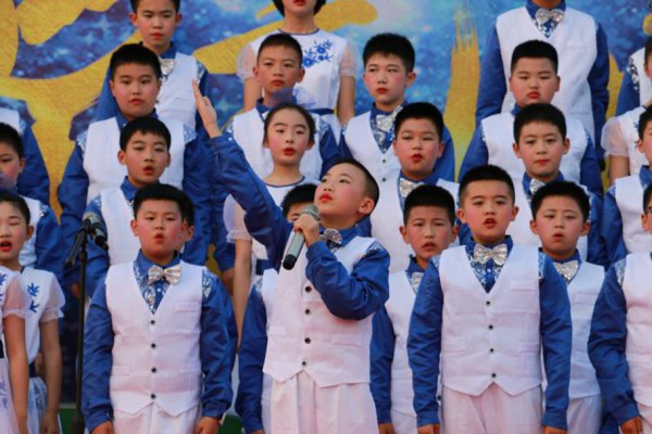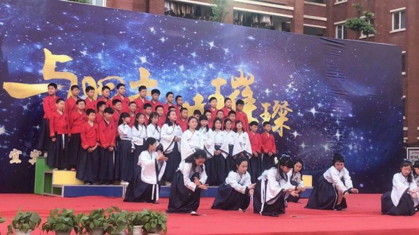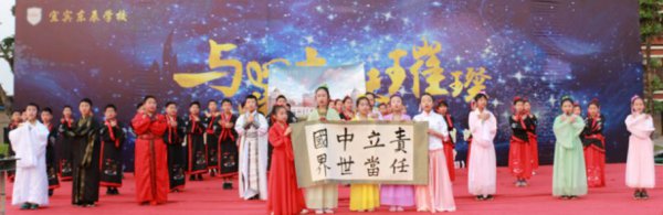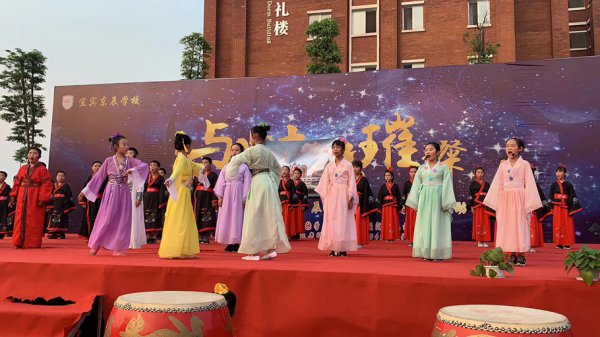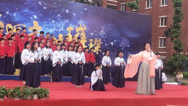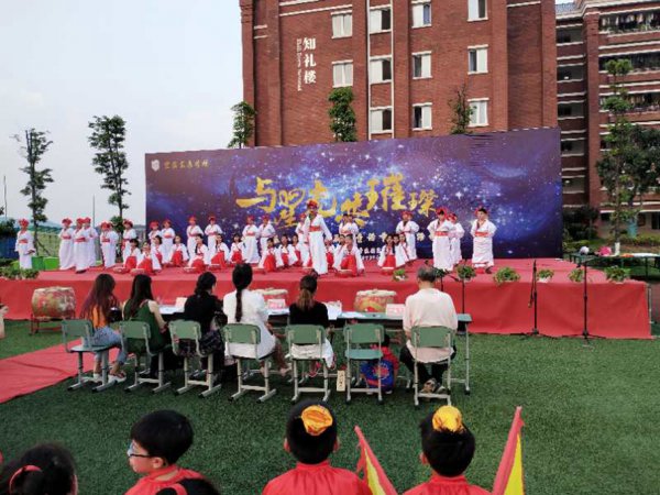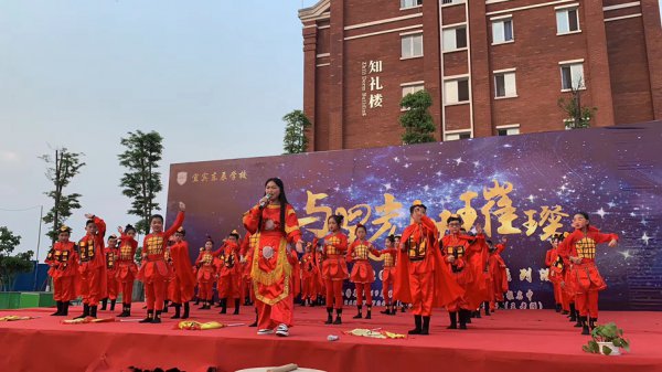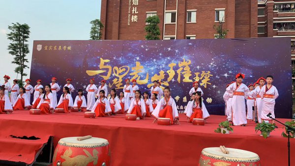 “东风化雨润心田,辰星闪闪向未来。品牌德育益心灵,辰星课程启智慧……”五二班原创诵读作品《宜宾东辰赋》催人奋进,展示形式新颖。融吟诵、舞蹈、器乐、书法为一体,令台下的师生家长叹为观止。