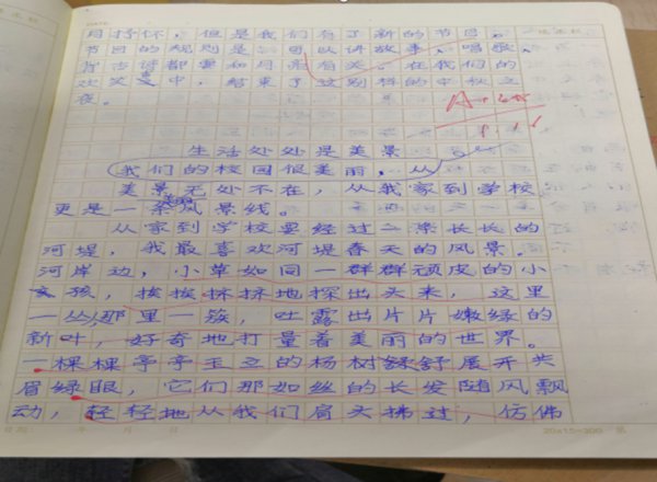 雨一直下,还有越来越大的趋势,一到六年级的孩子们仍旧整齐地站在雨中进行着升旗仪式。中途,一老师为站在旁边的陈校长递来电话,当然听不见对话内容,但是从陈校长边听边伸出手试探雨量大小的动作,可以猜测对话内容肯定与下雨和周会有关。电话挂掉了,但是升旗仪式却是一直进行到了最后。淋了一场雨却比当时立即回教室更高兴,为这群孩子高兴,我们和他们一样感受到了对意志的锻炼。