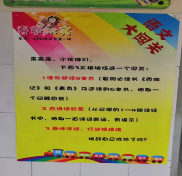 其中令人最感兴趣,让人叹服的是我们东辰特有的学月活动。9月“国学月”,10月“数学月”。并不是因为他们的学月活动,而是他们的活动完全呈现一个树状结构图,从整个学校的总体分散到学段、从学段到年级,从年级到班级,从班级到个人,从学生个人再延伸到学生的家庭。如果只是这样也就罢了,最令人肃然起敬的是他们对细节的重视,还能从学生家庭一直层层递进检查、总结、评奖、公布、分享再追踪倒回到学校。我们可以想象到,当一个孩子从自己,再到家庭通过自己的努力学习、自信地分享,不断地往前冲刺,每通过一个阶段都会给孩子带来无穷的荣誉感以及对学习的强烈兴趣,那么这样的学月活动才能真正体现出它的价值,国学素养,数学魅力也才能真正扎根在孩子们的心中。