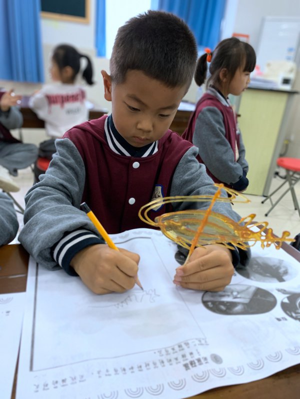 原来是宜宾东辰学校小学部的孩子们在学习画糖画呀!为了提高学生的艺术修养,深入了解宜宾的民间艺术特色,理解民间艺术的内涵和特点,近期,宜宾东辰小学部美术组的老师们特意组织了这次“民间美术进课堂——线描糖画”特色体验课程。