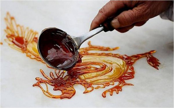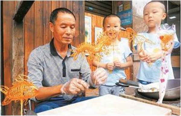 糖画,民间俗称“倒糖人儿”、“倒糖饼儿”或“糖灯影儿”, 它是地道的民间画种,颇具特色的街市艺术,广泛流传于巴山蜀水之间,是备受老百姓喜爱的工艺食品。