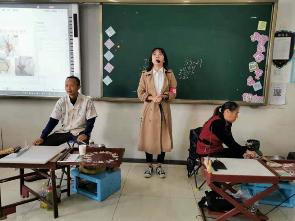 瞧,美术老师正在详细地给大家介绍糖画的历史和工艺制作的一般流程。