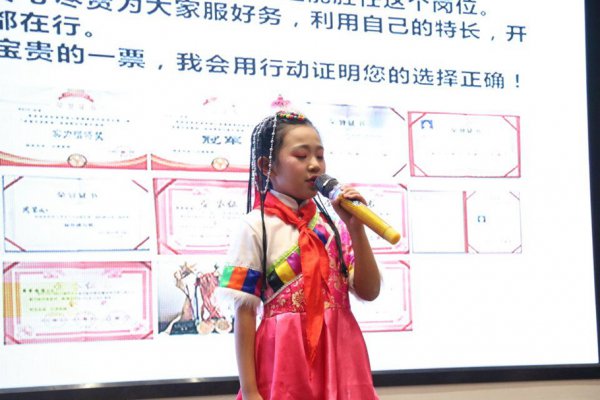 在活动中,候选队员们个个充满自信,通过精彩的竞选演说,热情激昂地宣讲自己对大队委工作的热情和向往;通过才艺展示,彰显了少先队员的真我风采,唱歌、跳舞、诗朗诵、乐器演奏……可谓是个个身怀绝技。孩子们在竞选中都使出了自己的“十八般武艺”,以表达自己对少先队工作的热情和决心。