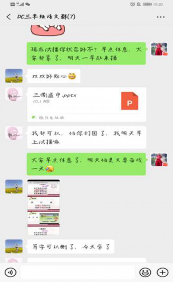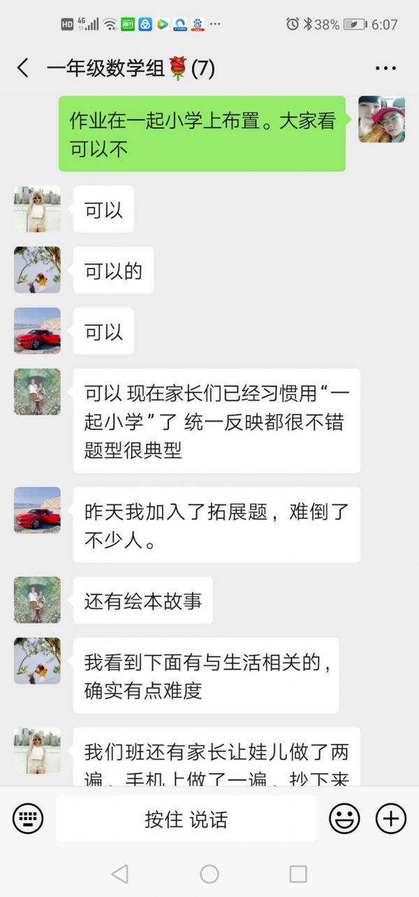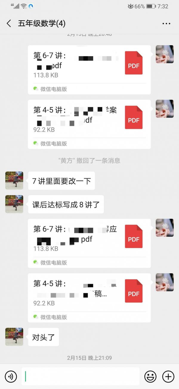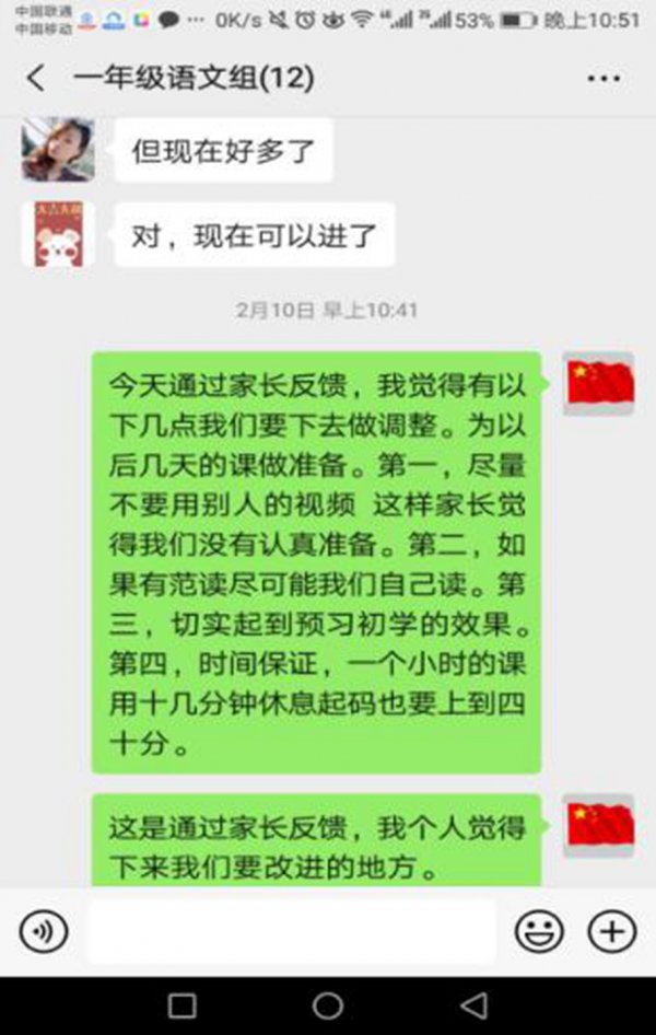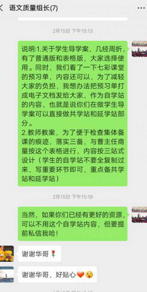 同时,数学组的网课通知统一模式,提前10-20分钟在班级群发出,线下教师们积极进行授课、作业情况的讨论和交流,及时调整制定出第二天上课的要求。