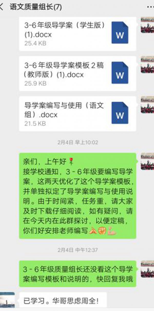 为了进一步改革“三备两研”,学科组再次部署导学案、教案的编写工作以及课题立项的相关工作,并对质量组长进行了线上培训,要求质量组长组织本组教师开展线上学习并落实具体工作,为开学做好充分的准备。各年级组积极行动起来,一切工作开展有序。