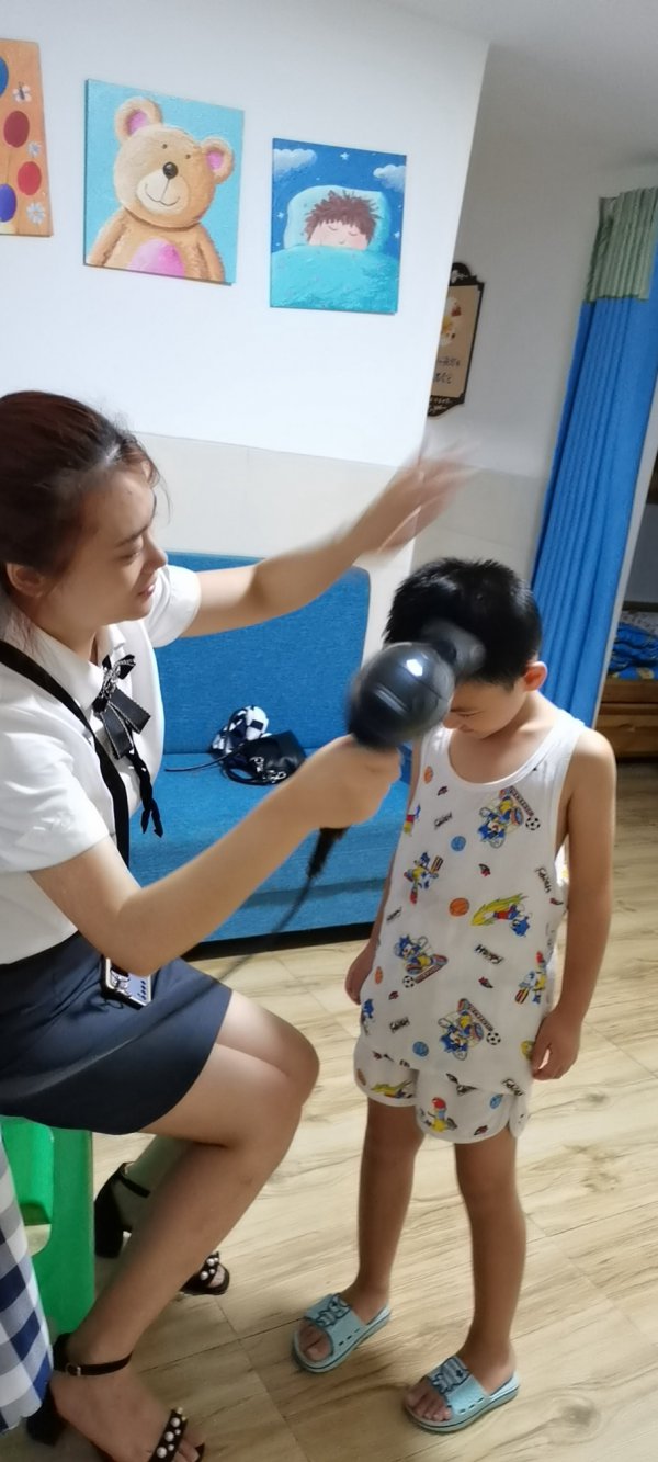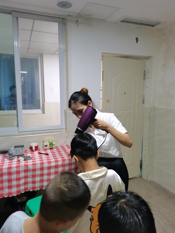 晚上,星星困得眨眼,孩子们也该回寝室休息了。生活妈妈细心地照料着孩子们洗漱,安慰着他们想家的心,直到进入甜甜的梦乡。