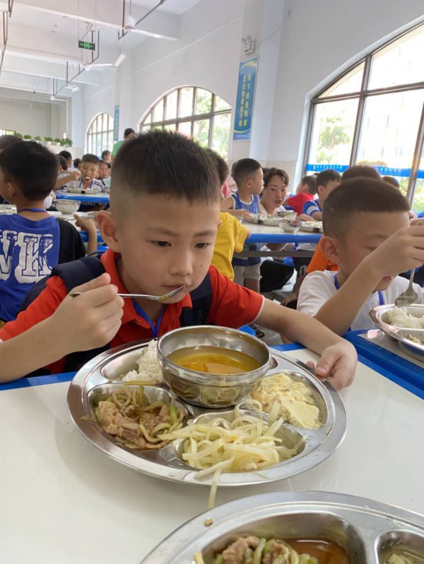 中午,孩子们津津有味地享用着美味的午餐。哇!有肉、有蛋、有蔬菜,还有小朋友最爱喝的南瓜汤。生活妈妈时刻关注孩子们的饮食情况,提醒着他们不能挑食,要营养均衡。