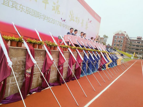主席台上各位领导陆续入座:绵阳东辰学校副校长、宜宾东辰国际学校校长黄迪定;绵阳东辰学校副校长、宜宾东辰国际学校执行校长兼初中部校长陈永红;宜宾辰国际学校副校长肖佑琪;宜宾东辰国际学校高中部校长于驰;初中部副校长何仲祥;学生发展与家庭教育中心主任聂燕平……