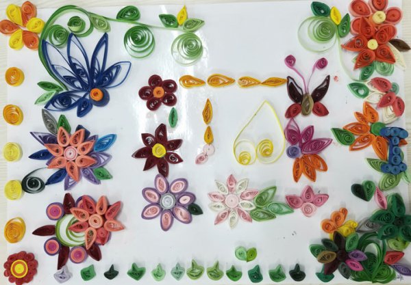 衍纸,也称卷纸,是纸艺的一种形式,是一种简单而实用的生活艺术 运用卷、捏、拼贴组合完成。孩子们拿出十二分的小心“伺候”着“生命力”脆弱的衍纸,小小的纸条,在手中变化出各种花式,真的美极了。