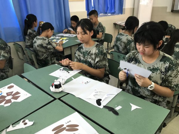 这么可爱的话一定是出自初中巧工大BOSS陈旭老师了。陈旭老师今天要带着孩子们做一个纸玩具,把普通的二维平面的硬纸板,变成三维立体的玩具。看起来跟拼图一样,可是这需要孩子们拿到材料的那一刻就要在脑袋里面像电脑模拟大厦3D图一样,形成一个完整的、全方位的影像,接着又需要在脑袋里将大厦拆分成部件,将部件变成2D的平面纸。最后,根据自己头脑风暴拆解出的平面图,进行裁剪、拼接,直到完成作品。这个项目难度系数大,因此陈旭老师采用了小组合作的方式,孩子们在合作和交流中,打开自己、融入集体,凭借集体的智慧创造出有趣的纸玩具。