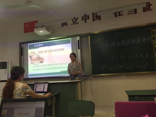 例如,在讲到音译兼译的单词talk show 脱口秀;cool 酷;fee 费;clone克隆时,我们可以给学生讲最早的音译方法:sofa 沙发,model 模特,coffee 咖啡,chocolate 巧克力 等等。让学生了解最初的音乐文化,加深对这些词的印象。我们在平常的教学中要不失时机的向学生灌输一些文化知识背景,将大大的提高课堂趣味性,提高学习效率。”杨艳老师对英语组的老师们提出了更高的要求,除了压力,更多的是动力。老师们在这样的气氛下,放开了讲课、磨课,不知不觉中,已是下午。