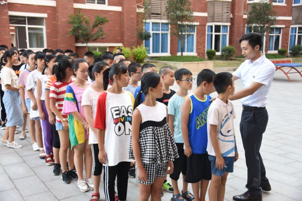 下午两点,孩子们和爸爸妈妈一起走进了凉爽的教室。