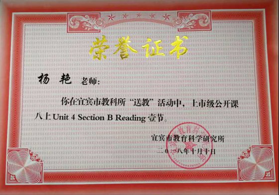 杨艳老师有着多年的英语教学经验,现任宜宾东辰七年级英语质量组组长,曾获东辰十佳优秀班导、十佳优秀指导教师,曾指导多名学生获全国初中生英语能力竞赛一、二等奖。在本次授课中,杨老师展现出卓越的教学风采。本堂课教学设计新颖,教学思路清晰,受课的香山中学八年级29班的学生在她的引导下,结合多媒体教学,调动了学生的积极性。学生们踊跃发言,积极思考,表现出极大的学习兴趣。