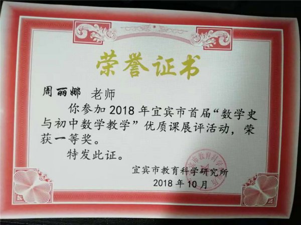 这一次,她在宜宾市首届“数学史与数学教学”录像课展评中,拔得头筹,荣获市一等奖。一直以来,她都在践行“其身正,不令则行;其身不正,虽令不从”的教育信条。为人如此,教育教学亦如此。