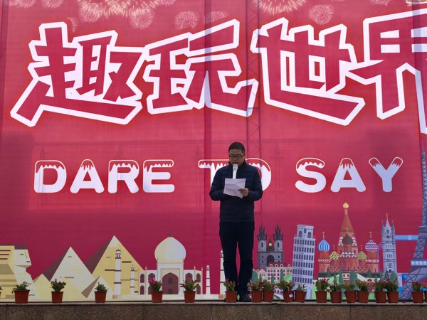 紧接着,东辰小学部校长廖辉上台为本次英语国际月活动致辞:就培养有中国灵魂世界眼光的现代人的愿景,许诺在不久的将来,我校将建设多个英语学生学习活动中心,转变大家的英语学习方式;建设英语教师专业发展中心,提升教师教育教学能力;构建多元国际合作发展渠道,打造学校英语特色品牌!