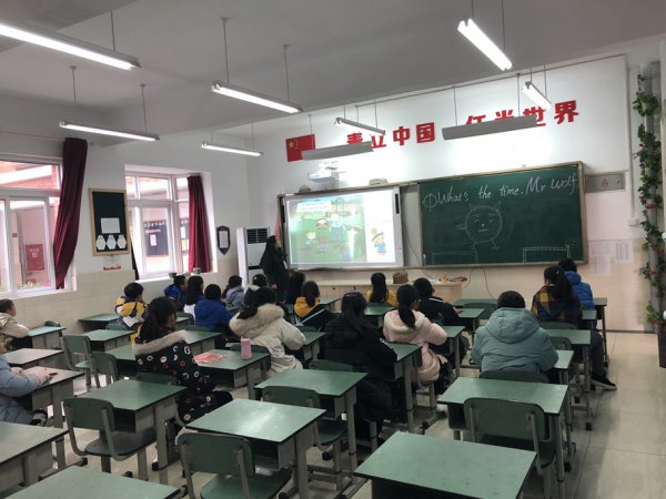 青年教师周书宇在《What"s the Time , Mr Wolf?》绘本学习中,通过引入游戏“老狼老狼几点啦”,极大程度上激起了孩子们的共鸣,一下子,孩子们的学习积极性被调动起来,大家跟着周老师用英语一问一答的形式,又重温了一遍内容,从而熟练地掌握了本节课的几个重点句型,最终达到了让孩子们在阅读中玩,在玩中学习的效果。