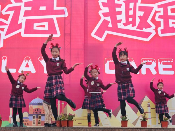 精彩的表演肯定离不开我们可爱的孩子们,在寒冷的十二月里,一群可爱的小精灵纷纷上台,穿着五颜六色的卡通服,为大家表演了 “Letter dance” 舞蹈、“A lazy fly” 英语短剧,以及火辣的拉丁舞秀。
