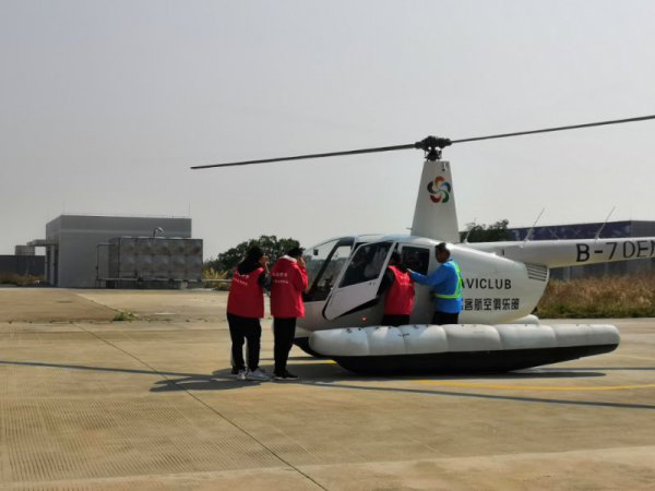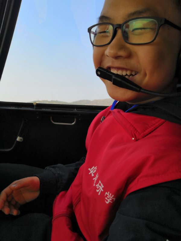 午饭后到了“爱飞客”俱乐部,孩子们自愿组合,三人一组,做好体验直升机准备。刚开始,有的孩子兴奋,有的孩子紧张。陈总带了秀美(也许是秀丽)一起飞。戴老师带了黄钰峰和龚银秋,这两孩子个头小点。直升机启动时声音大,不过都是工作人员把孩子们送到座位上,帮助系上安全带。低空飞行的感觉让每一个孩子发自内心的高兴。然后,漂亮的四川籍女飞行员给孩子们讲解直升机知识、流体力学、空气炮……孩子们饶有兴趣地进行空气炮击球比赛,欢笑声一片。