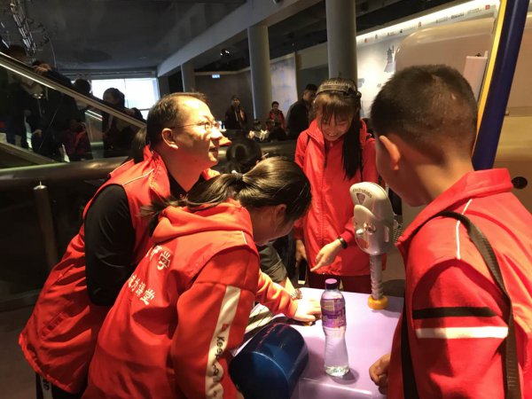 孩子们对科技馆的所有体验活动都感兴趣,很高兴。