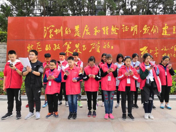下午的目的地是深圳莲花山,我们需要步行30分钟爬山。在山路上,赖老师讲解荔枝树故事,介绍深圳经济特区的发展。短短40年,改革开放就给我们带来了如此翻天覆地的变化,作为第一波改革开放实验基地的深圳,最能折射出这40年,中国发展和强大的剪影。