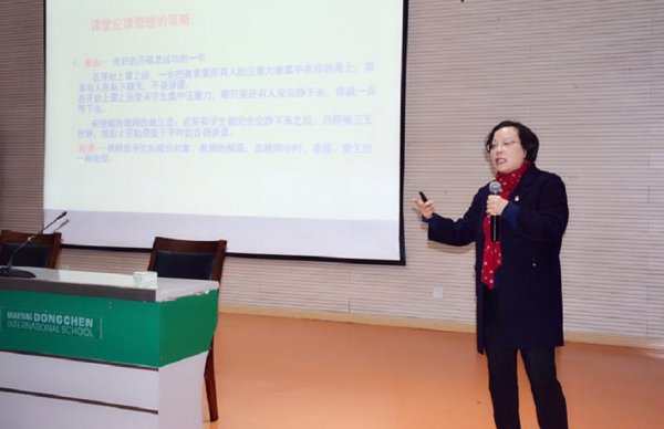王校长强调教师的课堂管理必须以身作则,树立正确的学生管理观,达到以管促学,以身示范的作用。“每一位学生都要发展,但不求一样发展;每一位学生都要提高,但不求同步提高;每一位学生都要合格,但不求相同规格。”这要求东辰教师在教学和管理中注意到每个学生的差异性,因材施教,重视学生在教学过程中的主体地位。管只是作为一种辅助教学的手段,教师应以如何上好一堂课为中心。这为新入职教师进课堂提供了基础支撑。