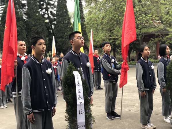 2019年4月2日,宜宾东辰学校初中部学生代表整装待发参与本次祭奠先烈扫墓活动。此次扫墓活动在江北烈士陵园进行,瞻仰烈士墓碑,向革命英豪致敬。