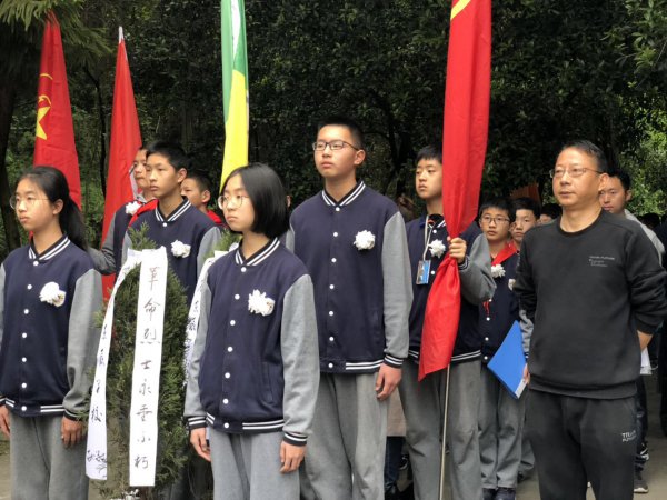 在学生发展中心戴浪主任的带领下,初中部师生代表于九点半抵达烈士陵园,进行一系列烈士瞻仰活动。抚今追昔,是党带领我们从一个胜利走向另一个胜利;饮水思源,是无数革命烈士用青春和热血为我们换来了今天的幸福生活。我们只有记住革命先烈,才能更深刻地认识到现在的生活是多么来之不易,才能更强烈的感到中华民族的伟大复兴需要我们每一个后来者奋发图强,沿着英雄的足迹前进,再前进。