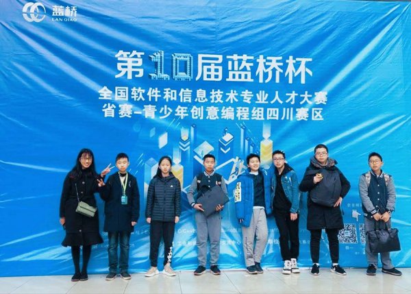 2019年3月24日,我校初中部和小学部共7名同学参加了《第十届“蓝桥杯”全国软件和信息技术专业人才大赛——青少年创意组》的比赛。其中,龚泰立同学获得四川省一等奖,曾凡耀同学获得四川省二等奖,席露瑜、李孟珂、周恩泽三位同学分别获得四川省三等奖。同时,龚泰立同学和曾凡耀同学获得全国总决赛资格,将代表我校前往北京参加全国总决赛,届时中国工程院院士倪光南以及工信部相关领导将亲自为获奖选手颁奖。