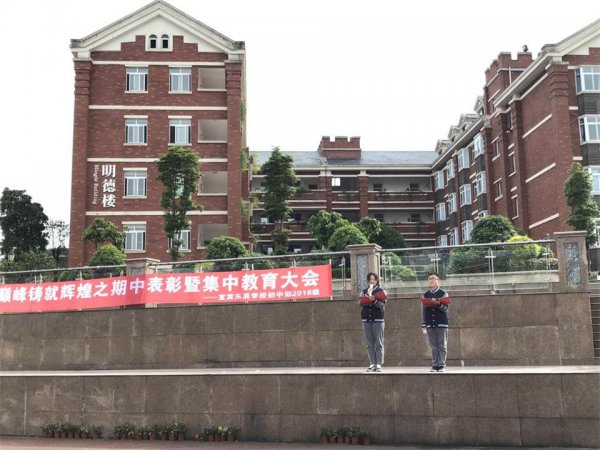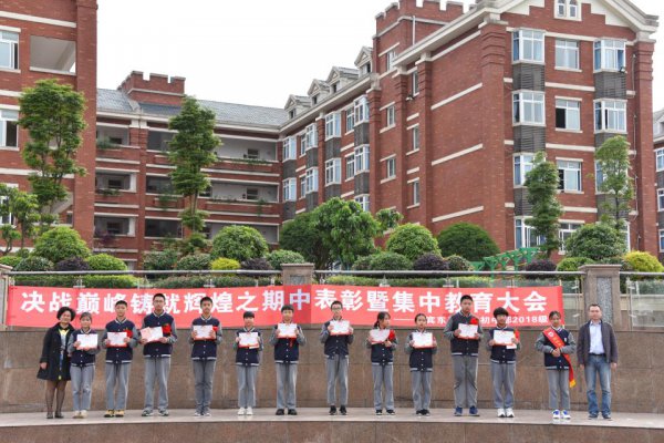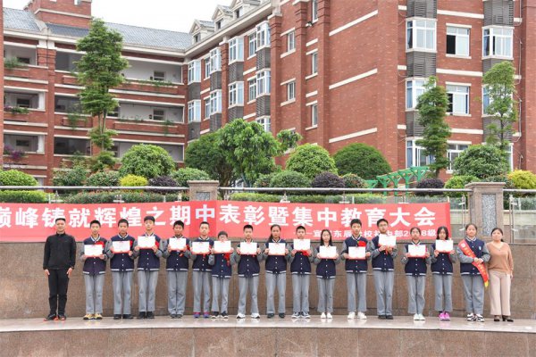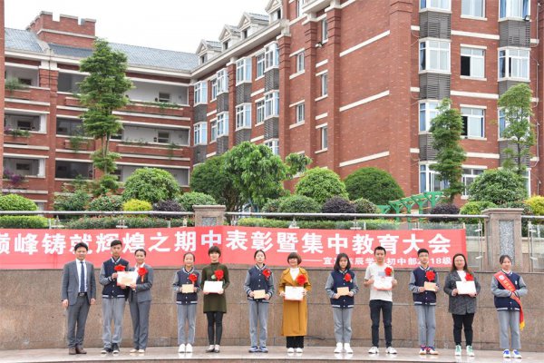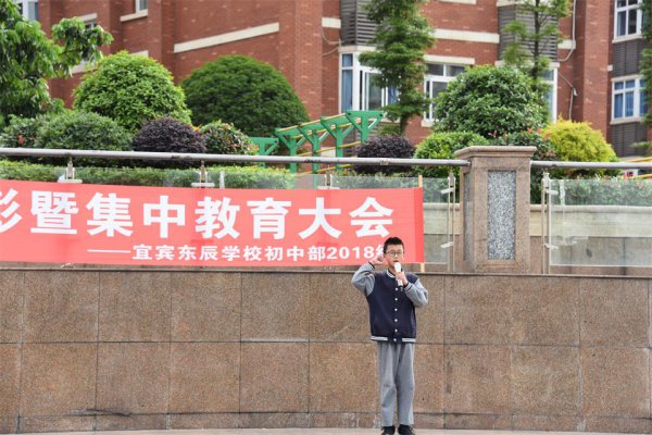 5月9日,宜宾东辰初一年级全体师生隆重聚会,举行了“决战巅峰铸就辉煌之期中表彰暨集中教育大会”。