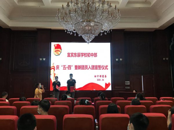 2020年5月7日,为纪念“五?四”运动101周年,宜宾东辰学校初中部团委在博雅楼红色大厅庄严而隆重地举行了新团员入团宣誓仪式。入团宣誓仪式由团委万琳书记、张骥副书记组织,学生发展中心戴浪主任、肖叶副主任到会祝贺,学部党支部书记黄汝彬向新团员进行了深情寄语。