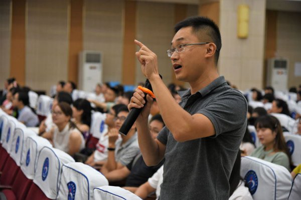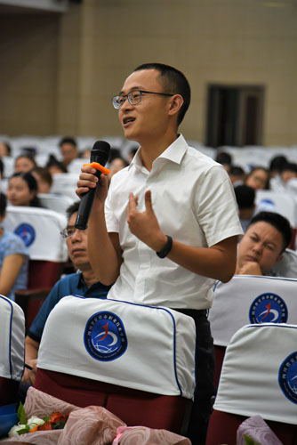 班导工作,一个严肃而枯燥的教育话题,被于校长幽默诙谐的演讲风格变得生动有趣。他时而给大家讲解幽默的教育故事,时而给大家展示“青蛙变王子的励志画面。现场和老师互动,面对面交流自己的教育心得,在这样一场教育专题讲座中,老师们收获的不仅仅是一场讲座,而是一次心灵的洗礼。