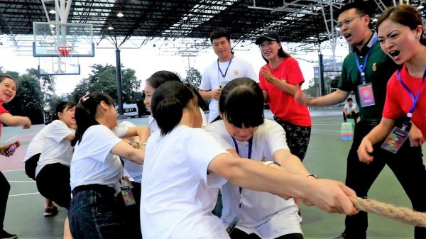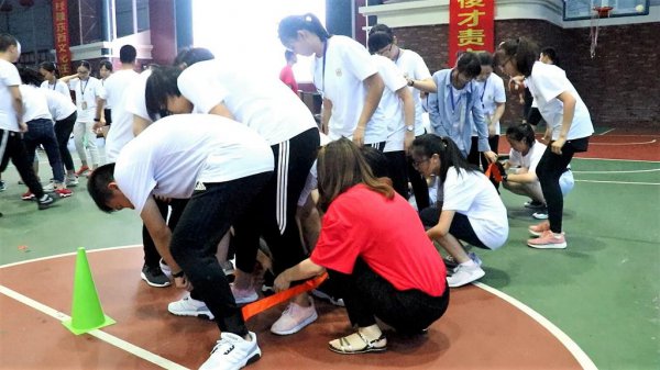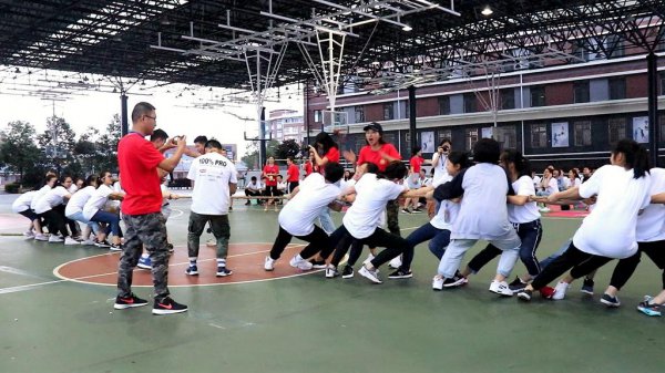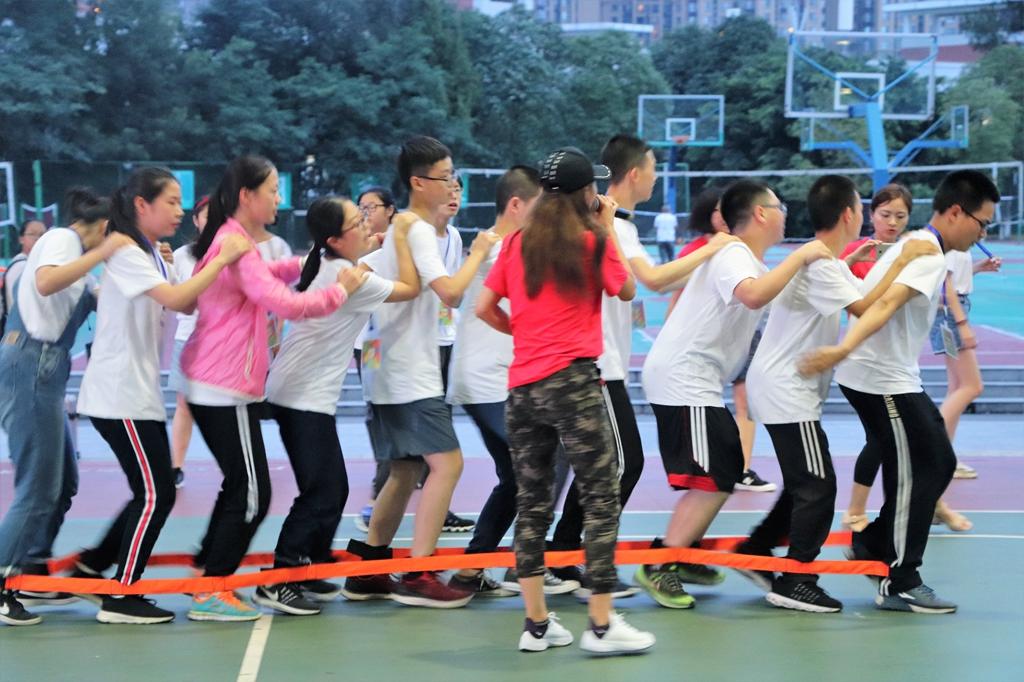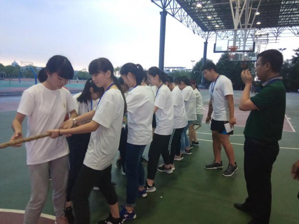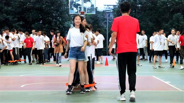 有轨电车,沟通、团结、指挥、配合……尽管没有经过提前练习,经过摸索和总结,同学们最终掌握了“有轨电车”的“行车”技巧,雄赳赳,气昂昂地迈向终点。拓展游戏让所有人都活跃起来,统一的口令,一致的步调,让同学们明白了团队合作的重要性。这既培养了同学们之间的交流沟通意识和服从意识,又激起了同学们战胜困难,实现共赢的勇气。
