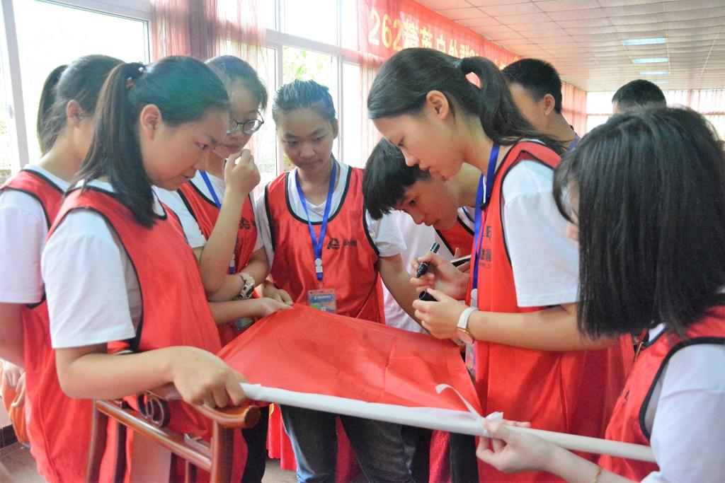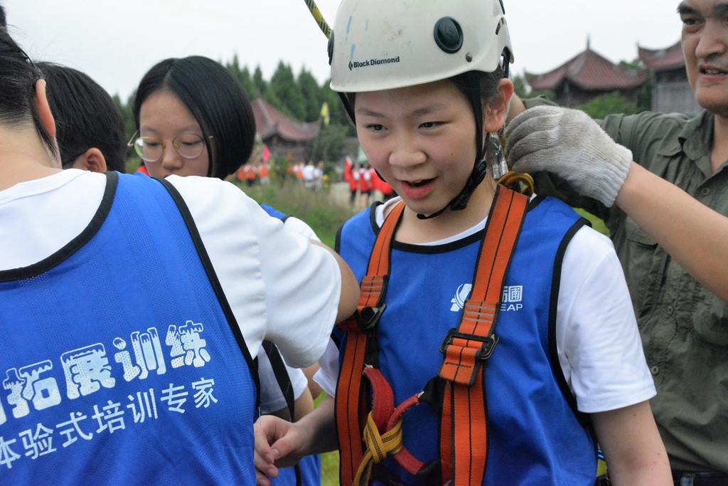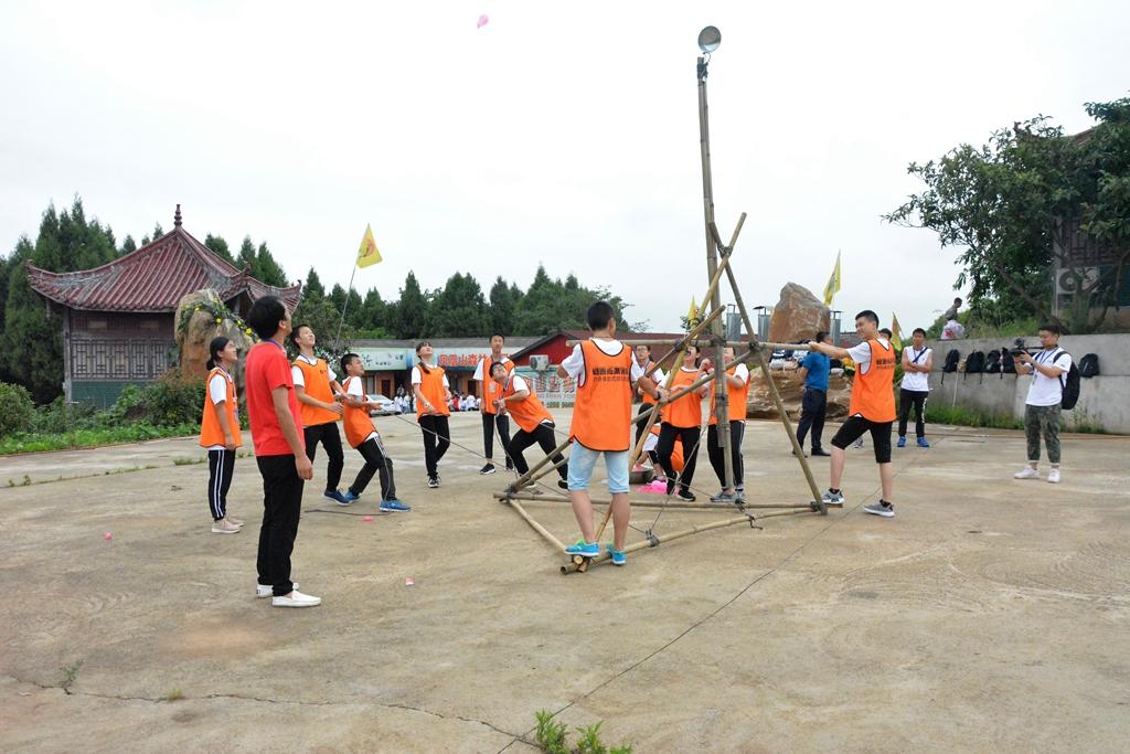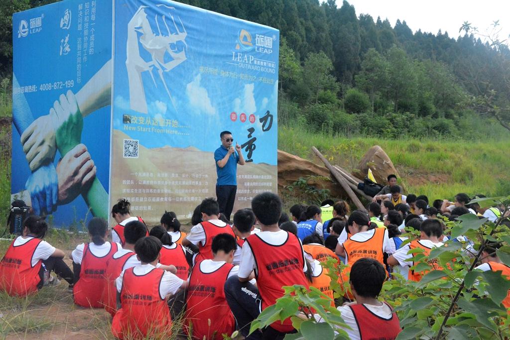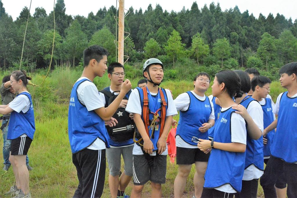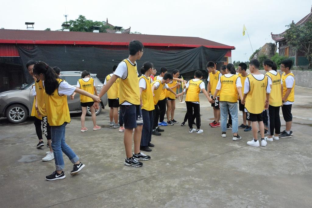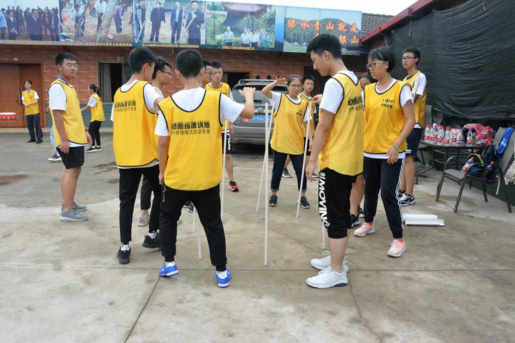 此时,天空下起了蒙蒙小雨,缠缠绵绵,但却淋不湿同学们的热情和期待。休息片刻,在几位教练的带领下,各小组开始给小队命名、设计队旗、选举队长。一切准备就绪后,开始了一天的素质拓展之旅。