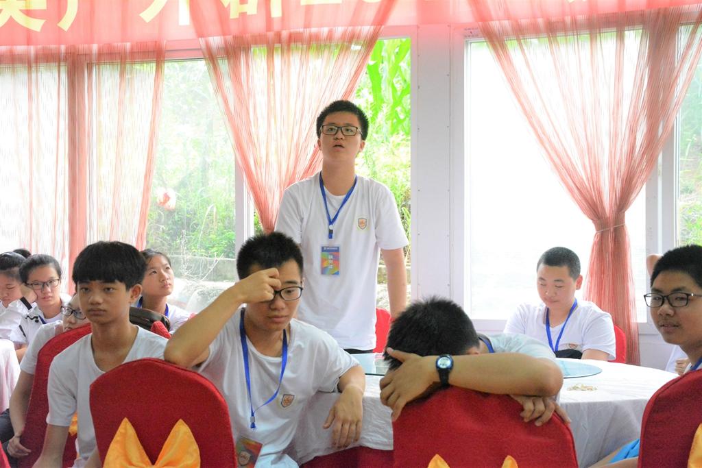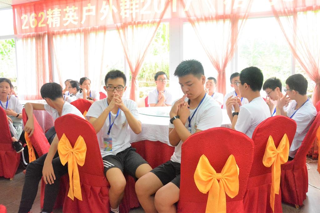 8点30,所有同学安全到达凤凰山公园,绿水青山,惊鸟鸣蝉,让他们忘记了劳累,稍作整顿,便开始准备投入一天的“战斗”。在休息室内,主教练给同学们强调了纪律和规则的重要性。肖教练说:“无论何时何地,你代表的不是自己,而是一个集体。只要懂得规则,严守纪律,服从集体,任何困难都可以被战胜。”肖教练还给同学讲述了一个美国士兵坚强不屈,获得至上荣誉的故事。“从故事中,我深深地感受到一个军人的毅力,一个军人的职责,一个军人的荣誉”,一位同学这样说到。