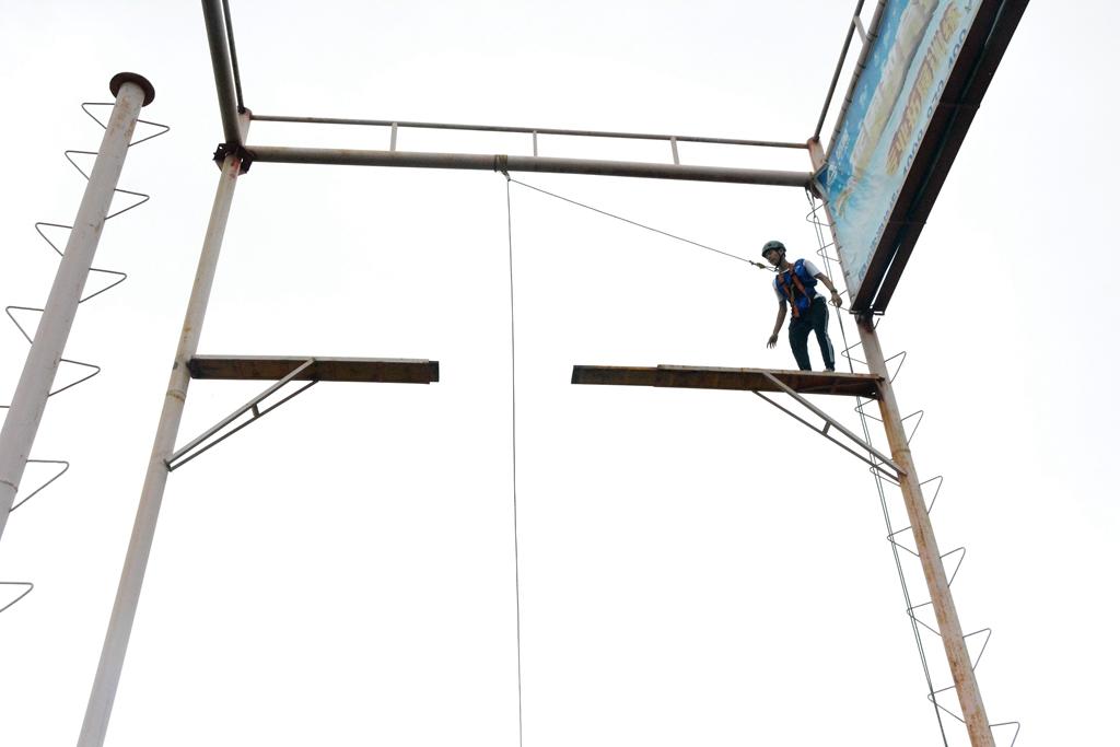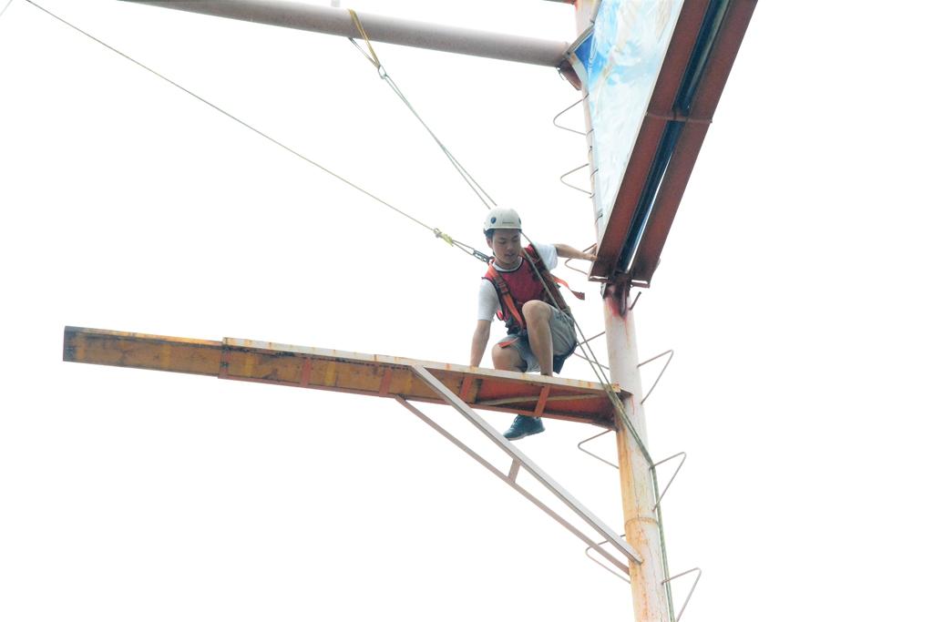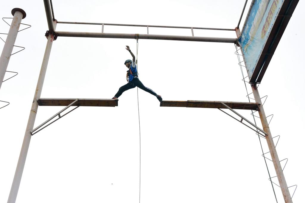 高空断桥:战胜恐惧,战胜困难。自我突破,自我超越。从你决定往上攀爬的那一刻,注定你要完美华丽地落下。