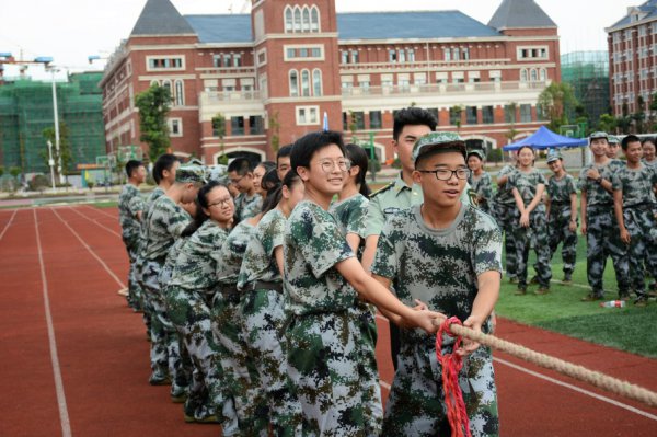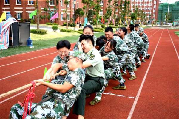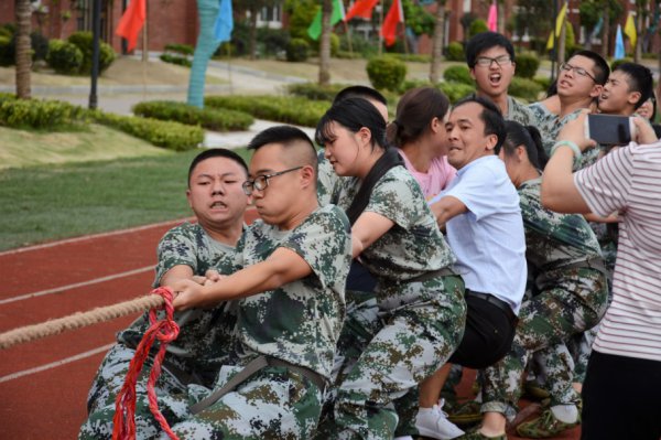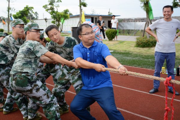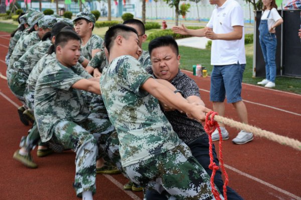 军训不止有体能的训练,更有别开生面的趣味活动。今天下午,高中部四个营举行了拔河比赛,由班导和教官带队,两两对决,同学们个个摩拳擦掌,跃跃欲试,都派出了最强比赛阵容,显示了勇争第一的决心。