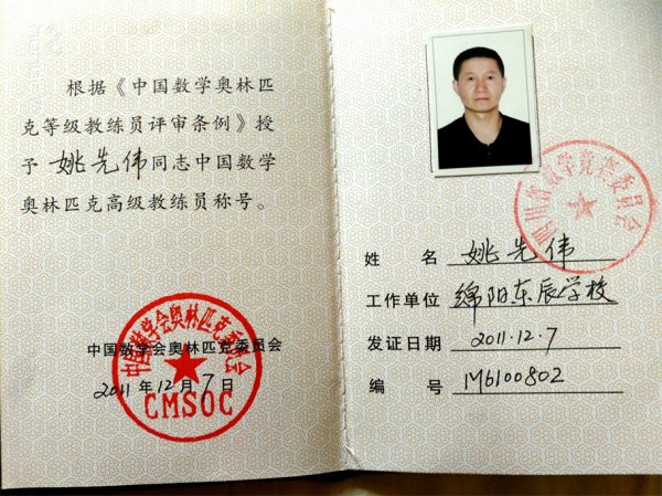 数学竞赛主教练姚先伟老师:中学数学高级教师,中国数学奥林匹克高级教练,长期从事高中A层班常规与竞赛教学,所教学生曾获南充市、绵阳市高考状元,数十人被清华、北大录取。