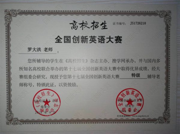 英语竞赛主教练罗大洪老师:中学英语高级教师,绵阳市优秀班主任,绵阳东辰优秀学科教研员。从教27年,所教学生有10多人次考上北大清华,近100人升入复旦,浙大,上交等国内名校,所指导学生参加各类竞赛获国家级,省级奖项若干,多次命制绵阳市统考和高三诊断考试题。