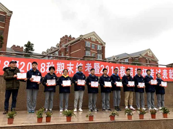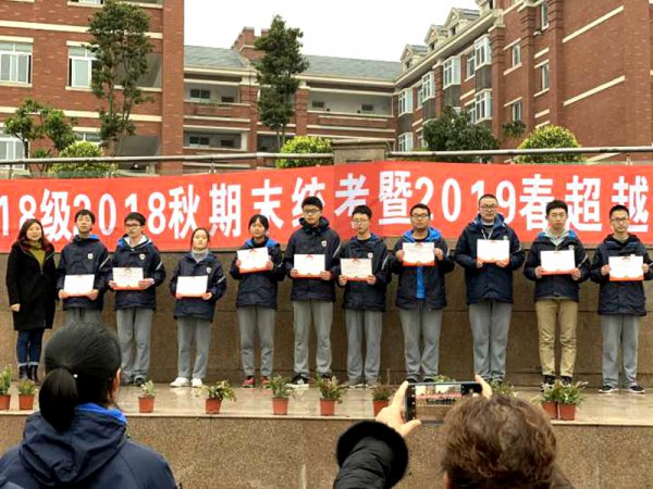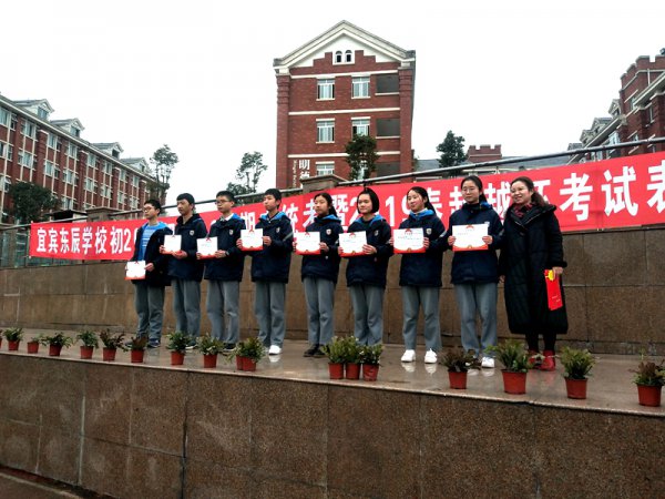 大会第一项,对寒假职场体验表现优秀者和“超越杯”考试获得优异成绩的同学颁奖。宜宾东辰学校将学生职场体验纳入“德育五励志”活动,开展生涯规划课程,利用假期让学生根据自己的兴趣、潜能、性格,参加职场体验。几天的职场体验时间虽然短暂,但孩子们都特别珍惜特别认真,取得了很好的效果。考试不是目的而是一种手段,对考试的表彰更应是一种认可和激励,认可阶段付出,激励不断超越。