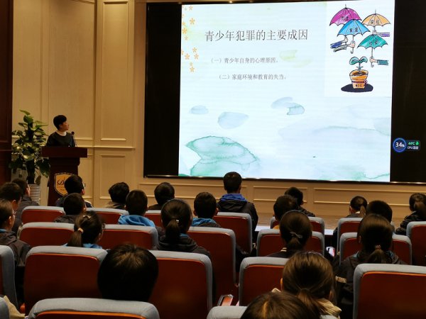 彭警官首先讲述了现阶段未成年人犯罪的严重性。接着,她就青少年犯罪的主要原因,青少年犯罪的主要特点等五个方面作了讲述,重点介绍了如何自我保护,教学生在面对危险时如何正确应对,具有很强的针对性和应用性。最后,彭警官还为大家带来了一段毒品犯罪的视频,告诫大家远离毒品,健康成长。