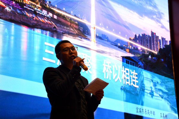 在宜宾东辰高中部人文月活动启动仪式上,王真树老师作了《三江汇聚,桥以相连》的主题演讲。他的演讲获得同学们的阵阵掌声。