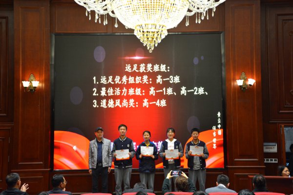 远足获奖班级:高一3班荣获远足优秀组织奖,高一1、2班荣获最佳活力班级,高一4班荣获最佳道德风尚奖。